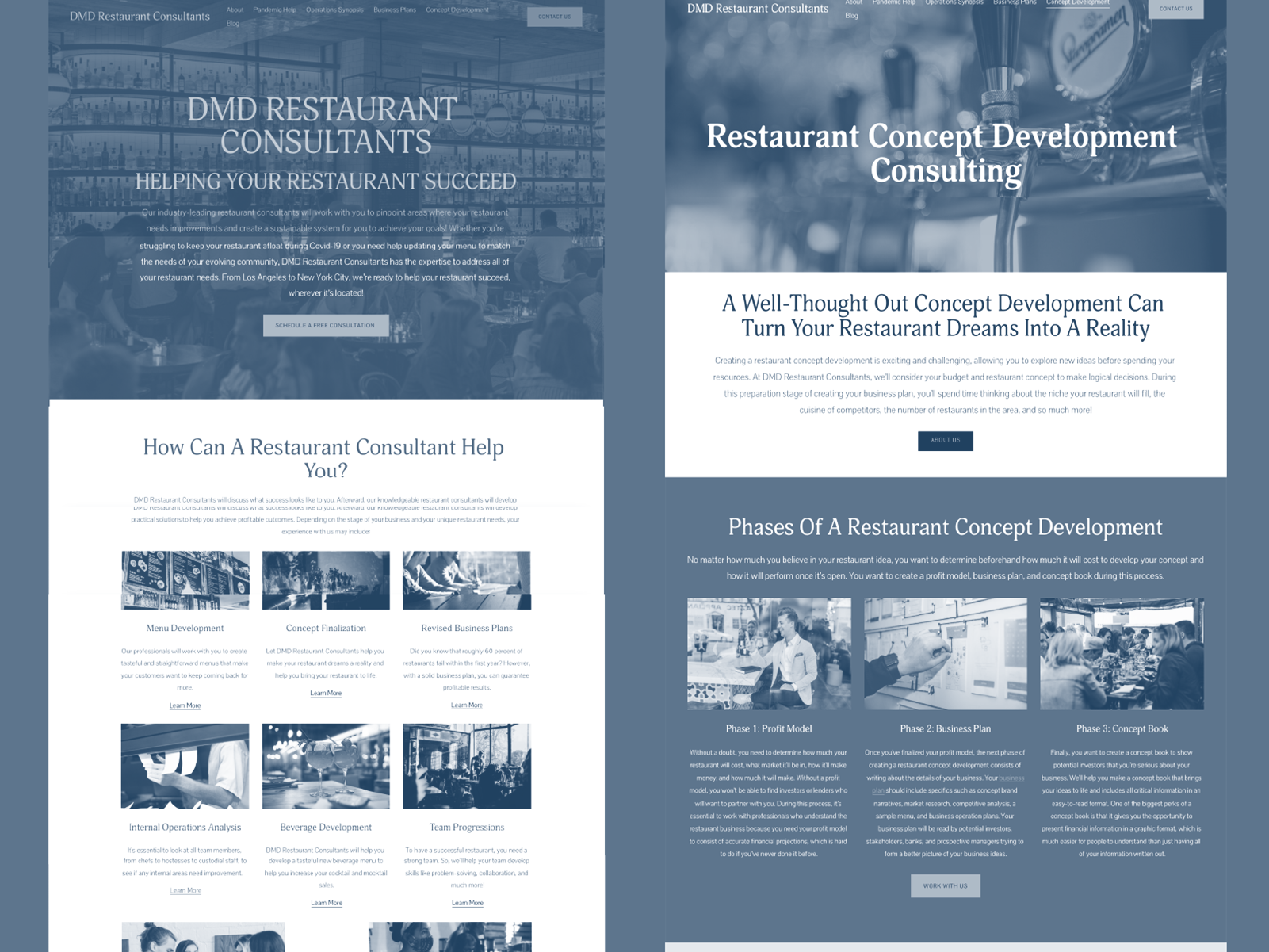 I worked as the lead web designer for the small business marketing agency, Succeeding Small. My responsibilities included designing and maintaining the website for DMD Restaurant Consultants.