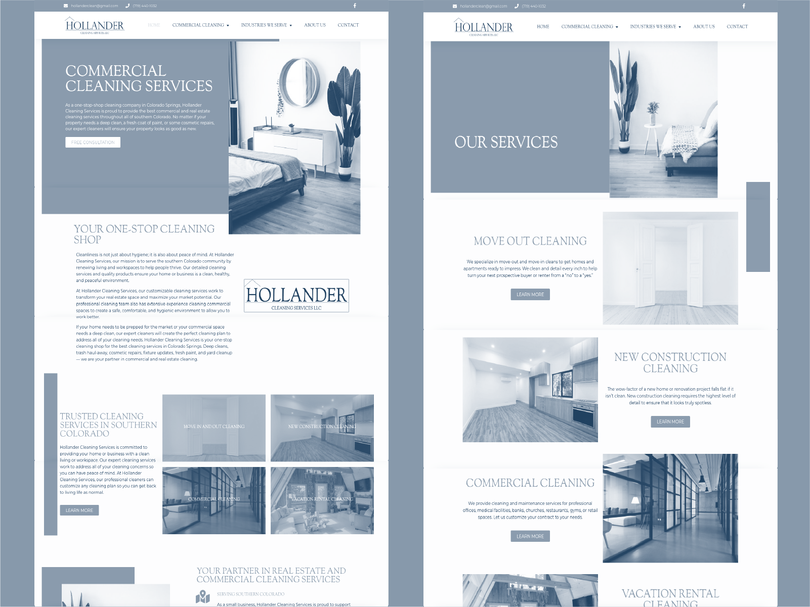 I worked as the lead web designer for the small business marketing agency, Succeeding Small. My responsibilities included designing and maintaining the website for Hollander Cleaning Services.